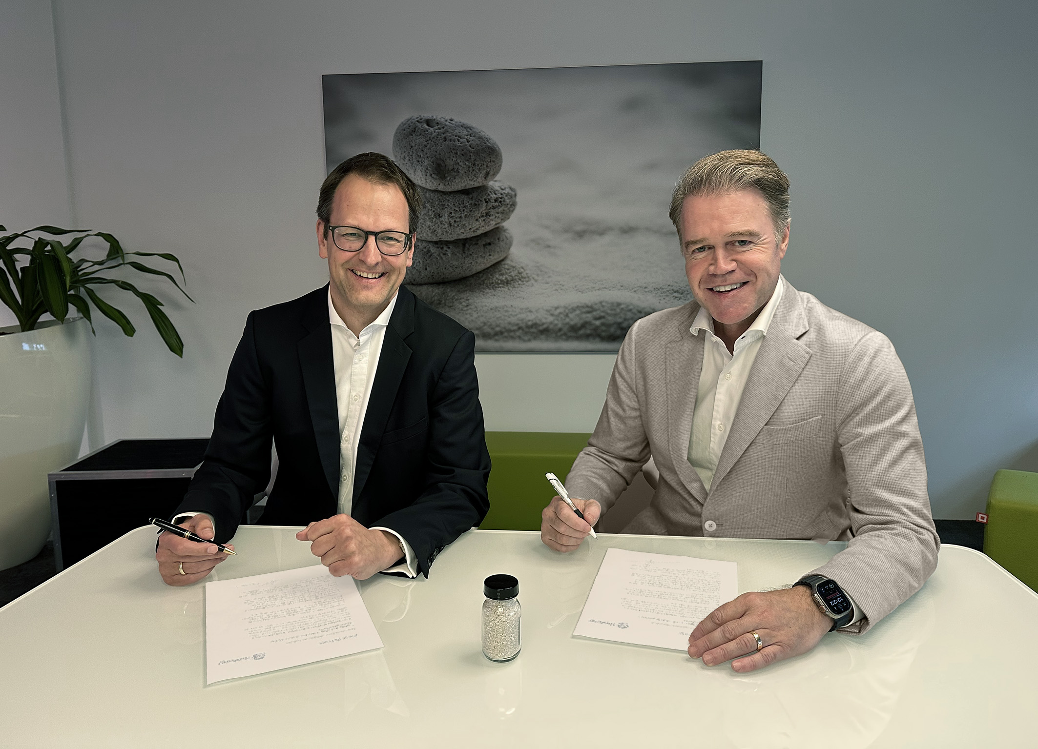 Von links nach rechts: Gunnar Büchter, Vice President of Global Sustainability bei Yanfeng und Han Hendriks, Chief Technology Officer bei Trinseo