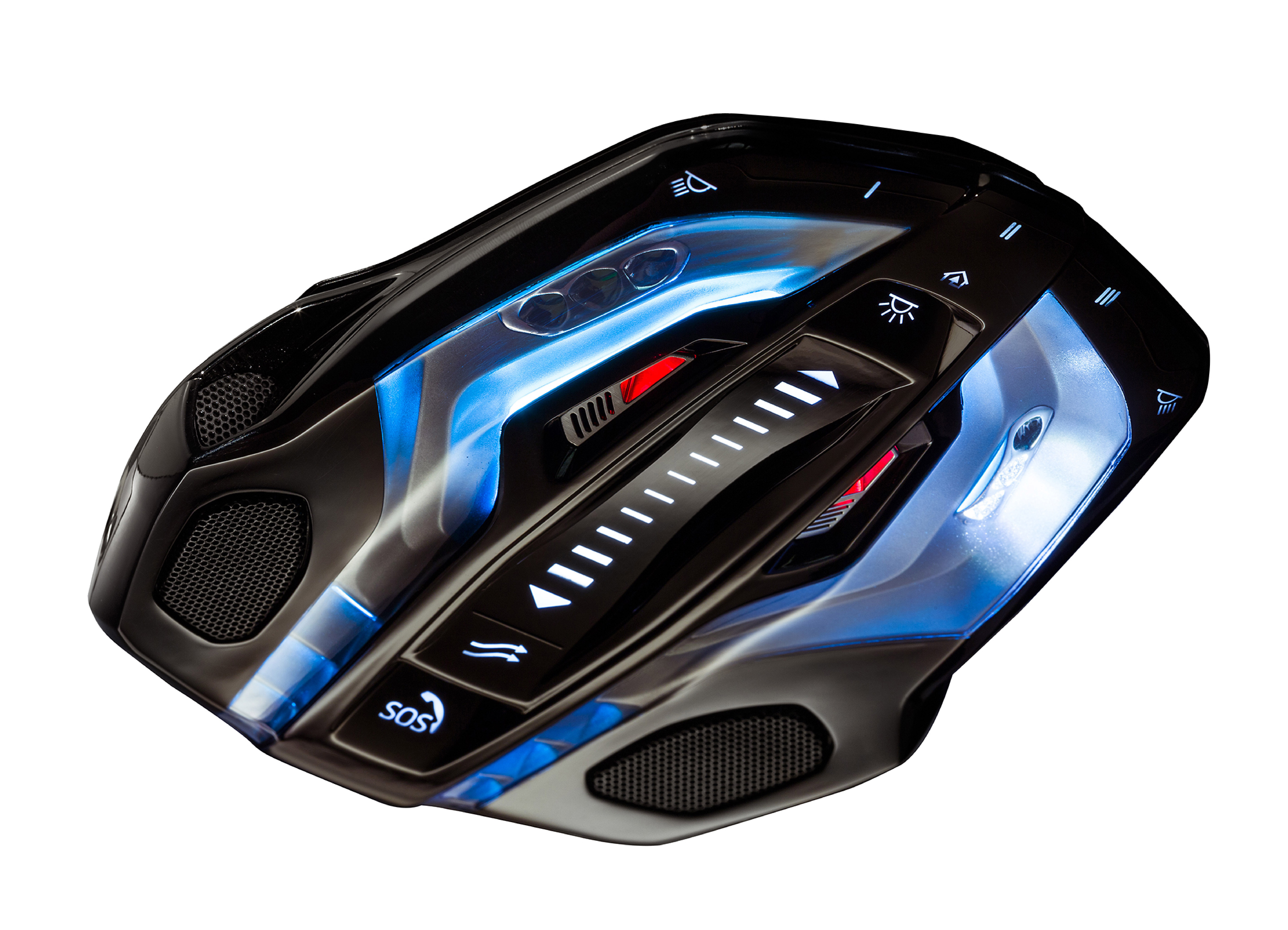 Schlanke Dachkonsole verbessert Komfort und Geräumigkeit / OH Console Blue / Yanfeng Automotive Interiors hat eine nur 15 Millimeter schlanke Dachkonsole mit einer innovativen Schiebedachsteuerung entwickelt. Diese bietet nahezu alle Funktionen traditioneller Dachbedieneinheiten, ragt jedoch nicht in den Kopfraum des Fahrers hinein.