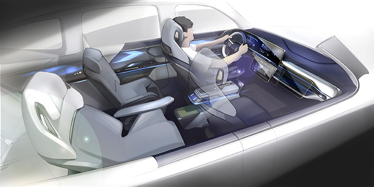 Auf der CES 2024 stellt Yanfeng sein „Electric Vehicle Interior“-Konzept (EVI) vor. Dabei handelt es sich um eine Vision für die künftige Fahrzeugarchitektur, bei der die traditionelle Instrumententafel entfällt und alle wichtigen Merkmale und Funktionen des Innenraums in einen „Smart Cabin“-Sitz integriert sind. Dazu gehören eine aktive Kopfstütze mit eingebauten Audiofunktionen, integrierte Sicherheitssysteme, intelligente Oberflächen sowie in den Sitz integrierte Ablage- und Ladefunktionen.