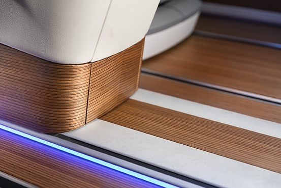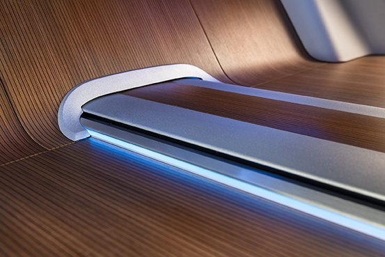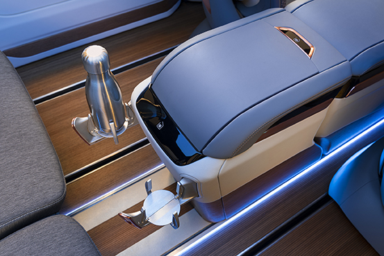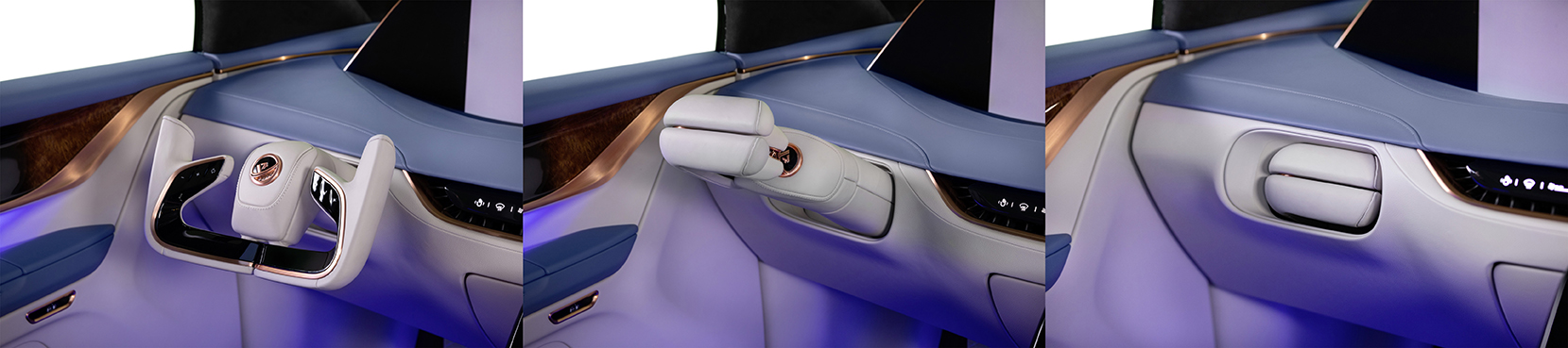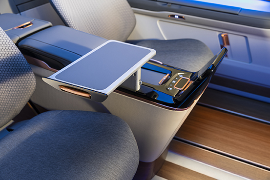 Die von YFAI in den XiM20 integrierte Bedienoberfläche des Smart Interior Surface (SIS)-Tischs ist über die Tischoberfläche aus Naturholz leicht erreichbar. Sie dient den Insassen dazu, die Fahrt einzuleiten und Funktionen wie Temperatur, Akustik, UV-Oberflächendesinfektion und Navigationssysteme zu steuern.
