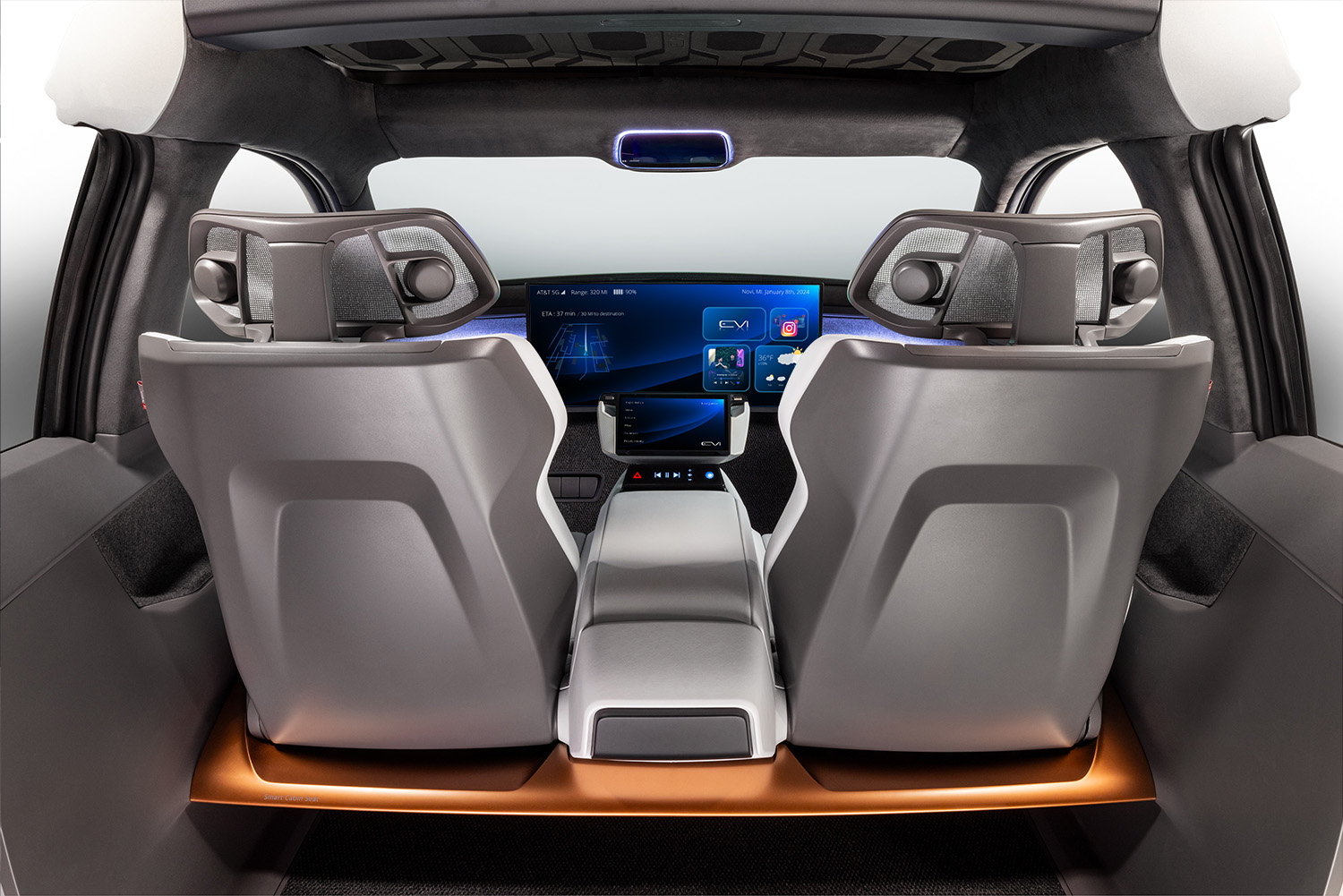 At the 2024 CES, Yanfeng debuted its EVI (Electric Vehicle Interior) concept, a vision for future vehicle architecture, that eliminates the traditional instrument panel, and incorporates all key features and interior functions into a Smart Cabin seat, including an active headrest with integrated audio, safety systems, smart surfaces, and storage and charging integrated into the seat.