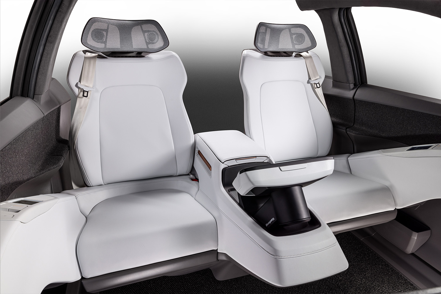 Through the development of EVI and the Smart Cabin Seat, Yanfeng's experts challenged themselves to simplify the vehicle interior while keeping the functionality that users expect. The Yanfeng solution builds them back in a unique way, in an all new module that incorporates both front seats, integrated floor console, steer-by-wire input system, HMI, displays, seatbelts and airbags, in addition to a HVAC microclimate system for thermal comfort.